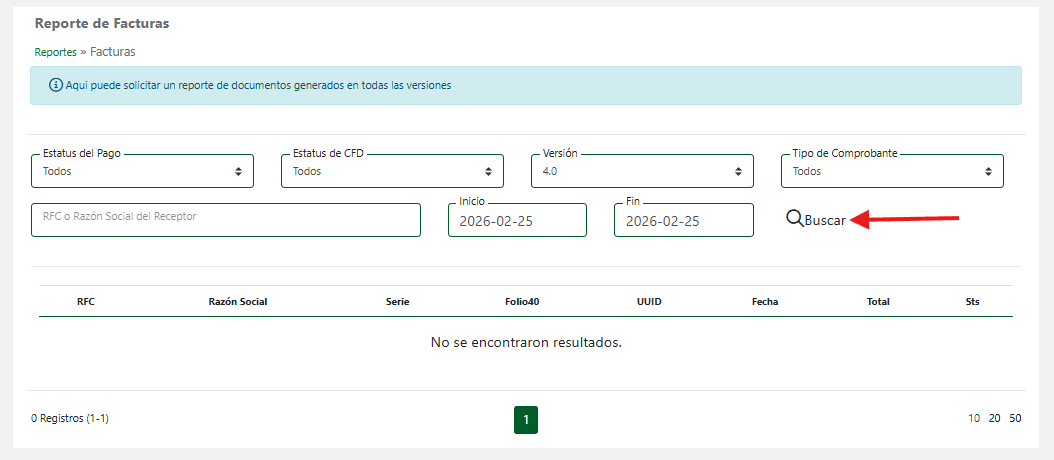 Una vez dado clic en el reporte que necesitamos, dentro de ese apartado podemos hacer un filtrado para obtener nuestro reporte y damos clic en buscar.